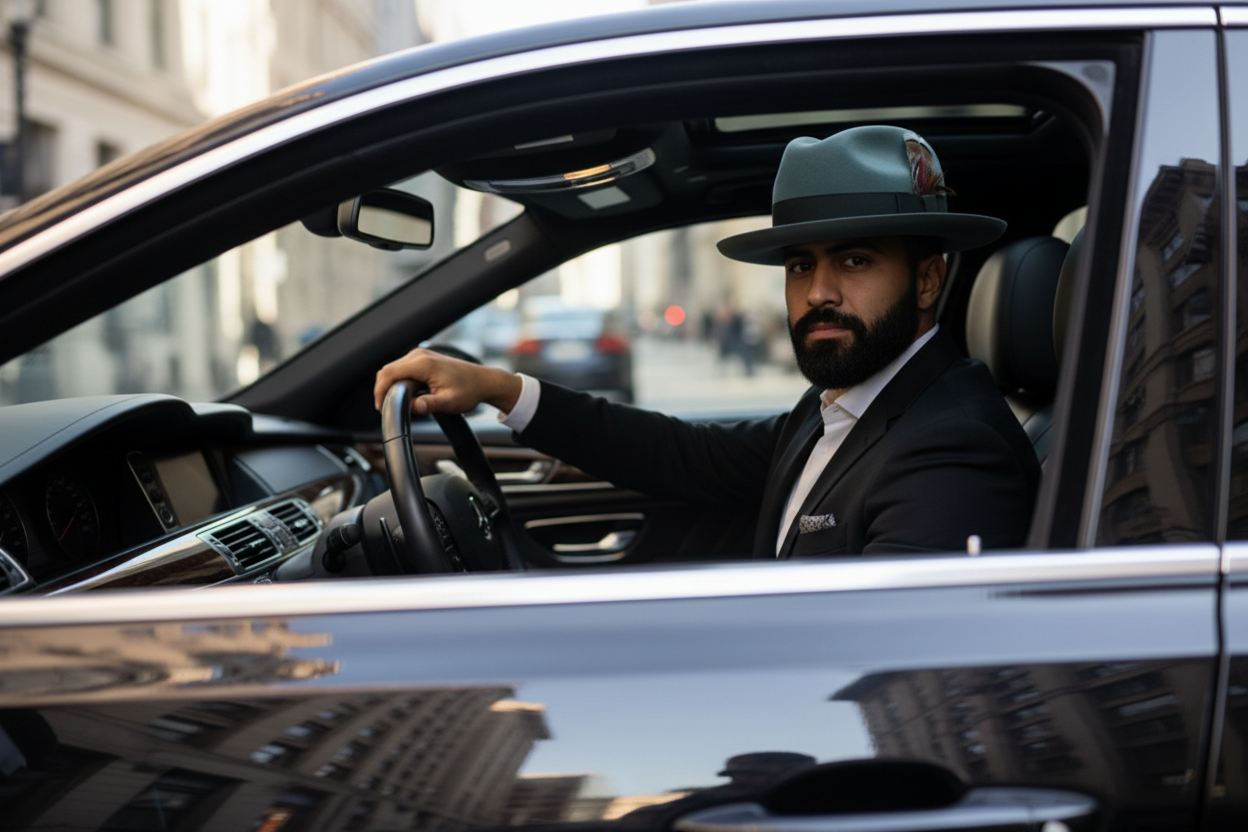 Accents: Turkey feather/black hat liner